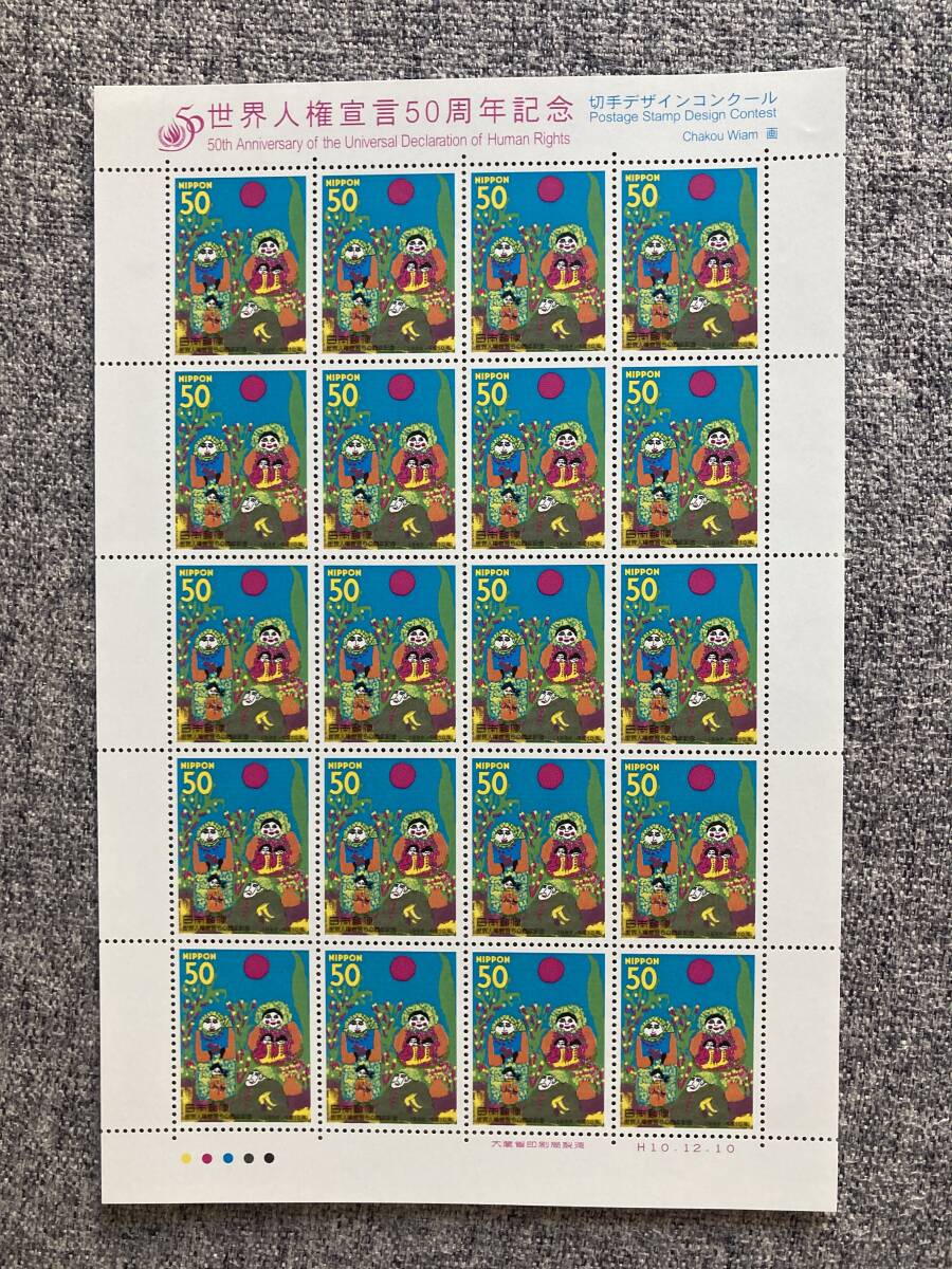 - ★未使用 世界人権宣言50周年記念 切手デザインコンクール 外務大臣賞 最優秀賞作品 かぞく Chakou Wiam モロッコ 1998年平成10年 50円20枚