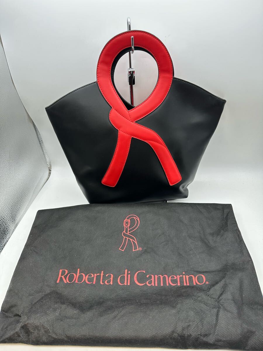 > Y03048 Roberta di Camerino ロベルタ ディカメリーノ レザー ブラック×レッド ハンドバッグ