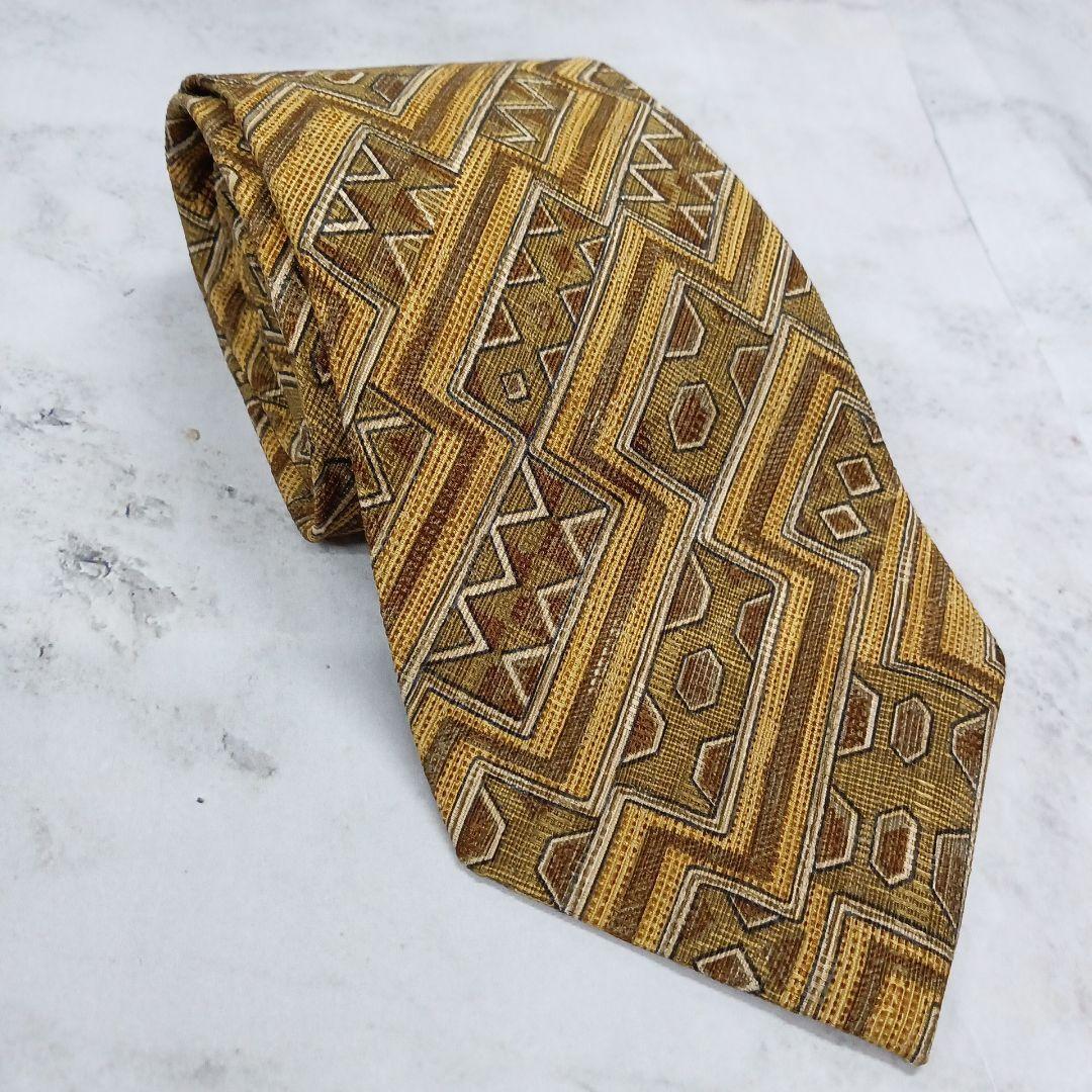- コムサデモード ネクタイ 茶色 モザイク柄 絹 日本製【n731】