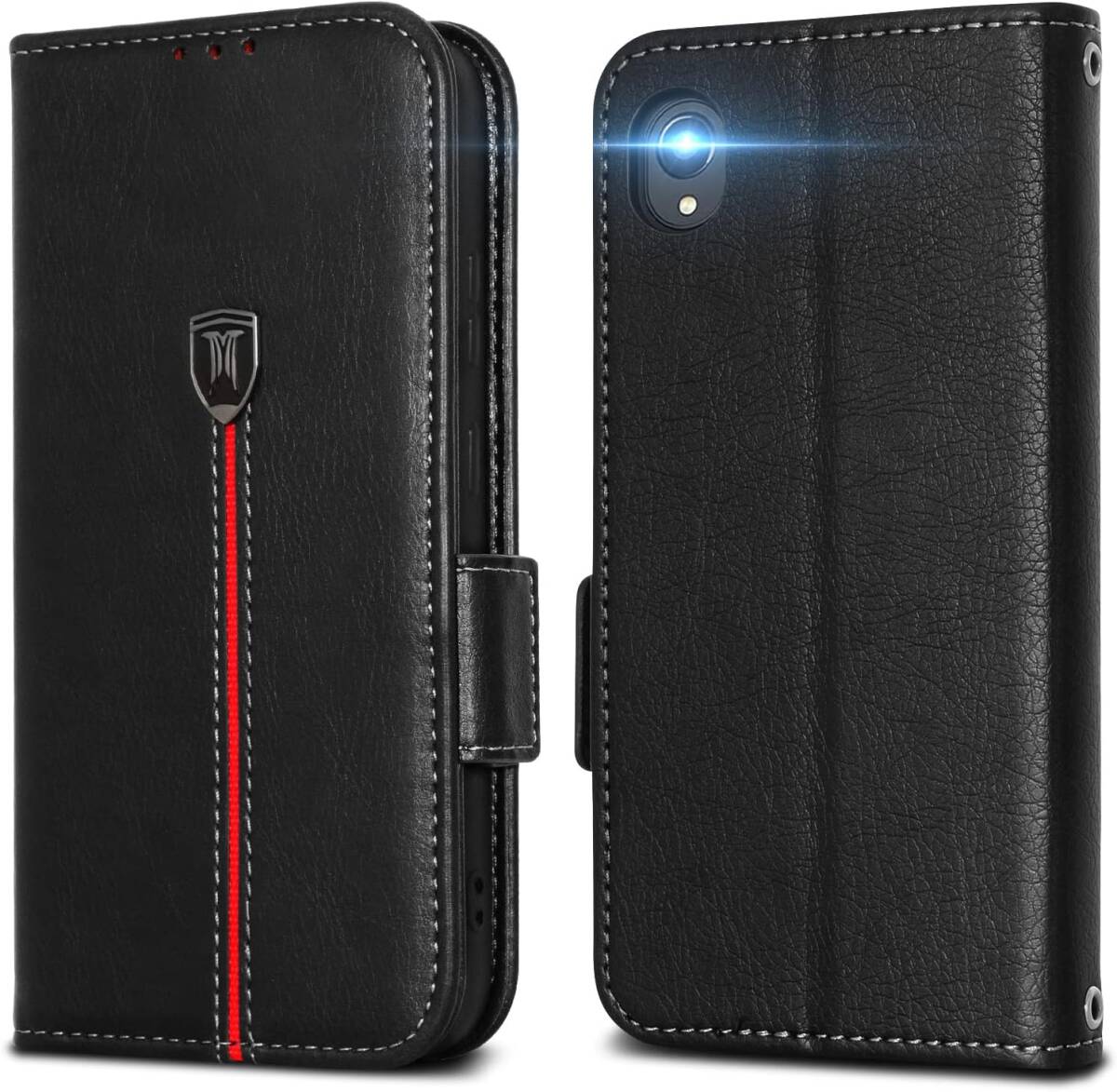 - Galaxy A22 5G ケース 手帳型 手作り 高級レザー 汚れ防止 Samsung 手帳型 マグネット式 カード収納 スタンド機能付(ブラック)