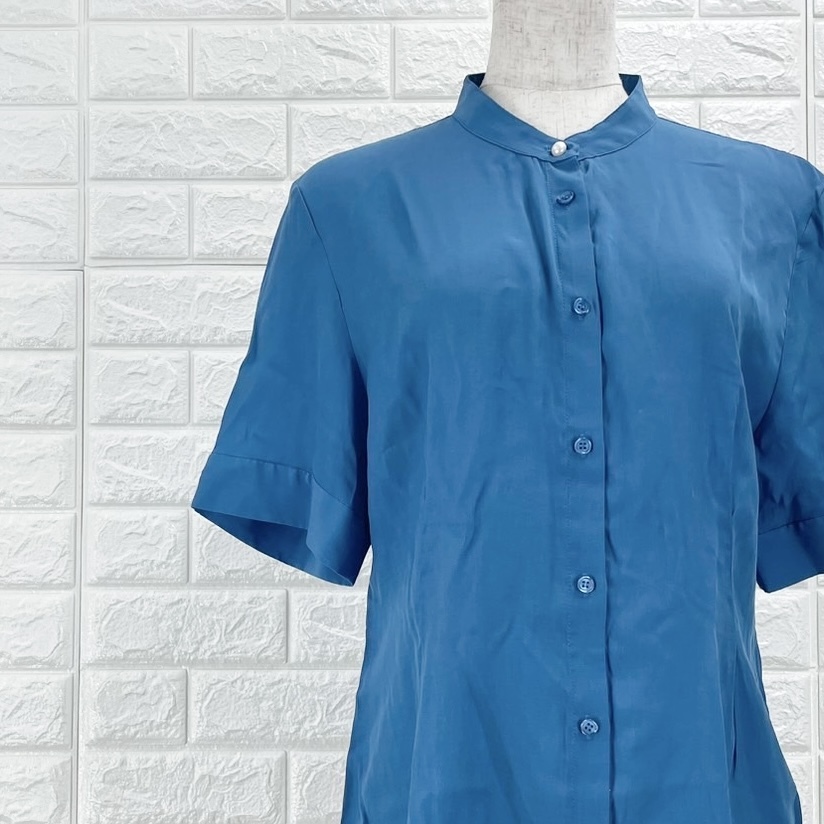 > 【A3442】A/C DESIGN BY ALPHA CUBIC エーシーデザインバイアルファキュービック ブラウス レディース ブルー 半袖 シンプル 春夏 Mサイズ