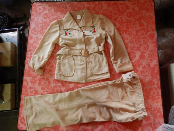 > RETRO 子供服 012012 女の子 ツーピース7721 赤 9-10才 ポリ80麻20 未使用 日本製 MADE IN JAPAN 昭和レトロ