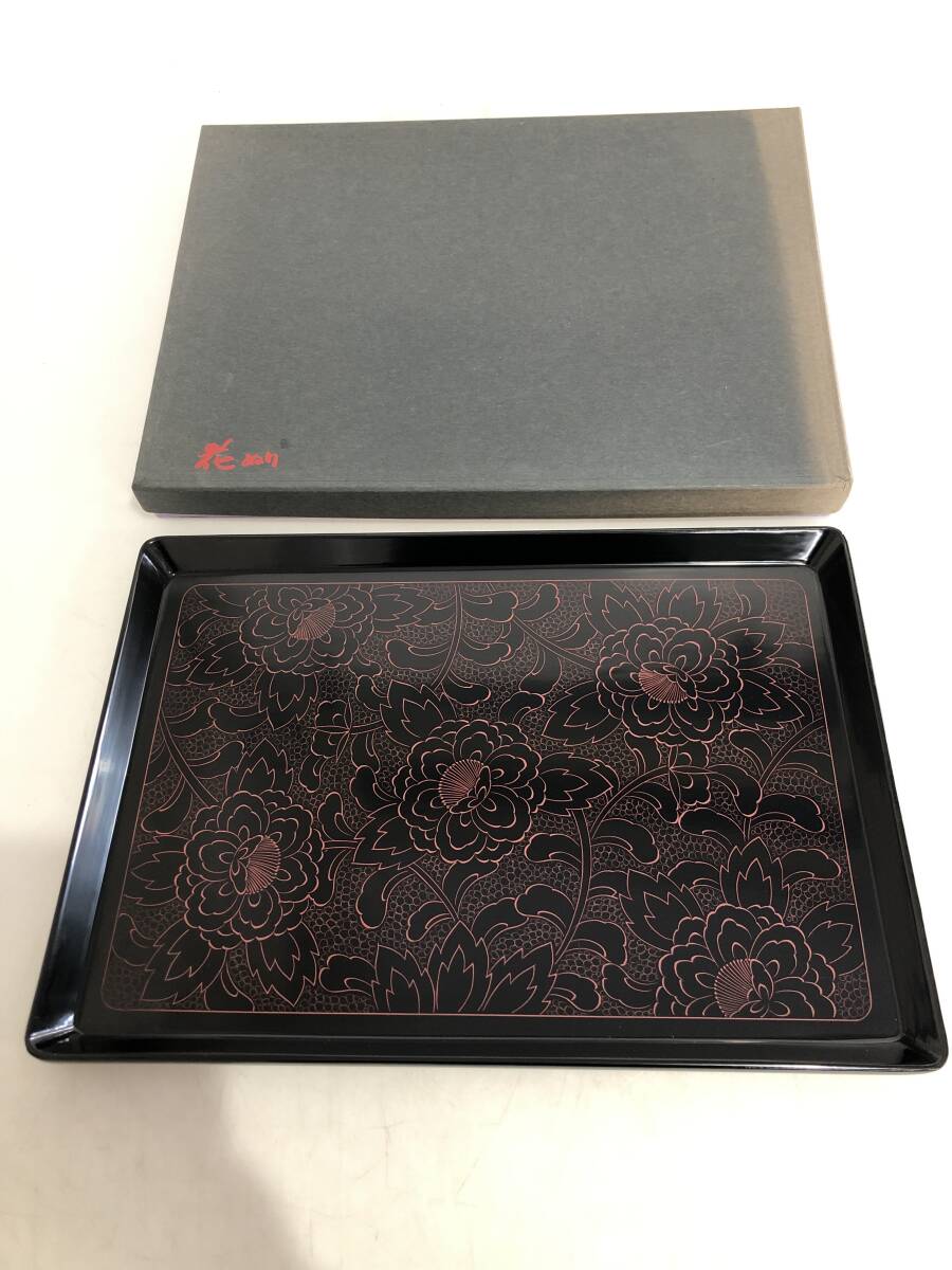 - HB3187 桜井漆器 花ぬり 四角盆 トレイ 和風