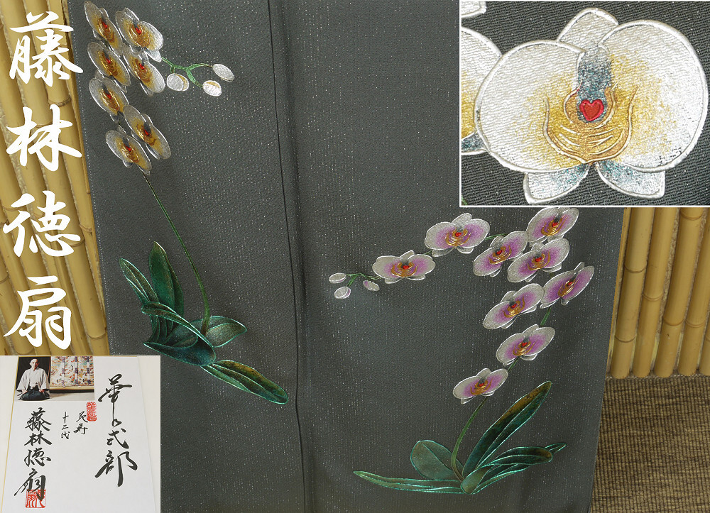 > 【京かんざし】534 ≪国際的伝統工芸作家・十二代・藤林徳扇 苑寿≫ 華乃式部 色紙付き身丈167.5 cm裄丈70 cm★即決送料無料