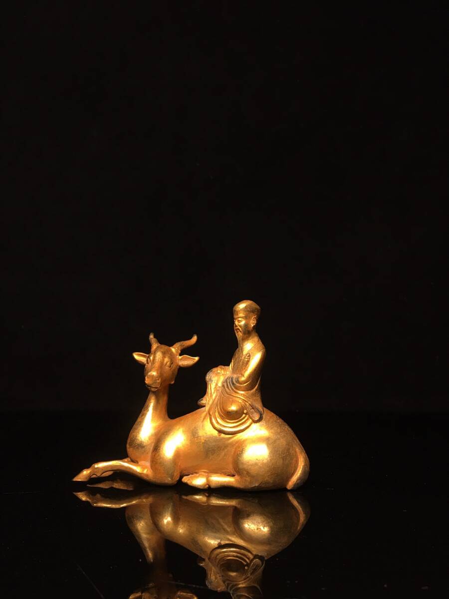 - ▽鴻▽ 銅製 塗金 寿星福祿寿 置物 古賞物 中国古玩 中国古美術