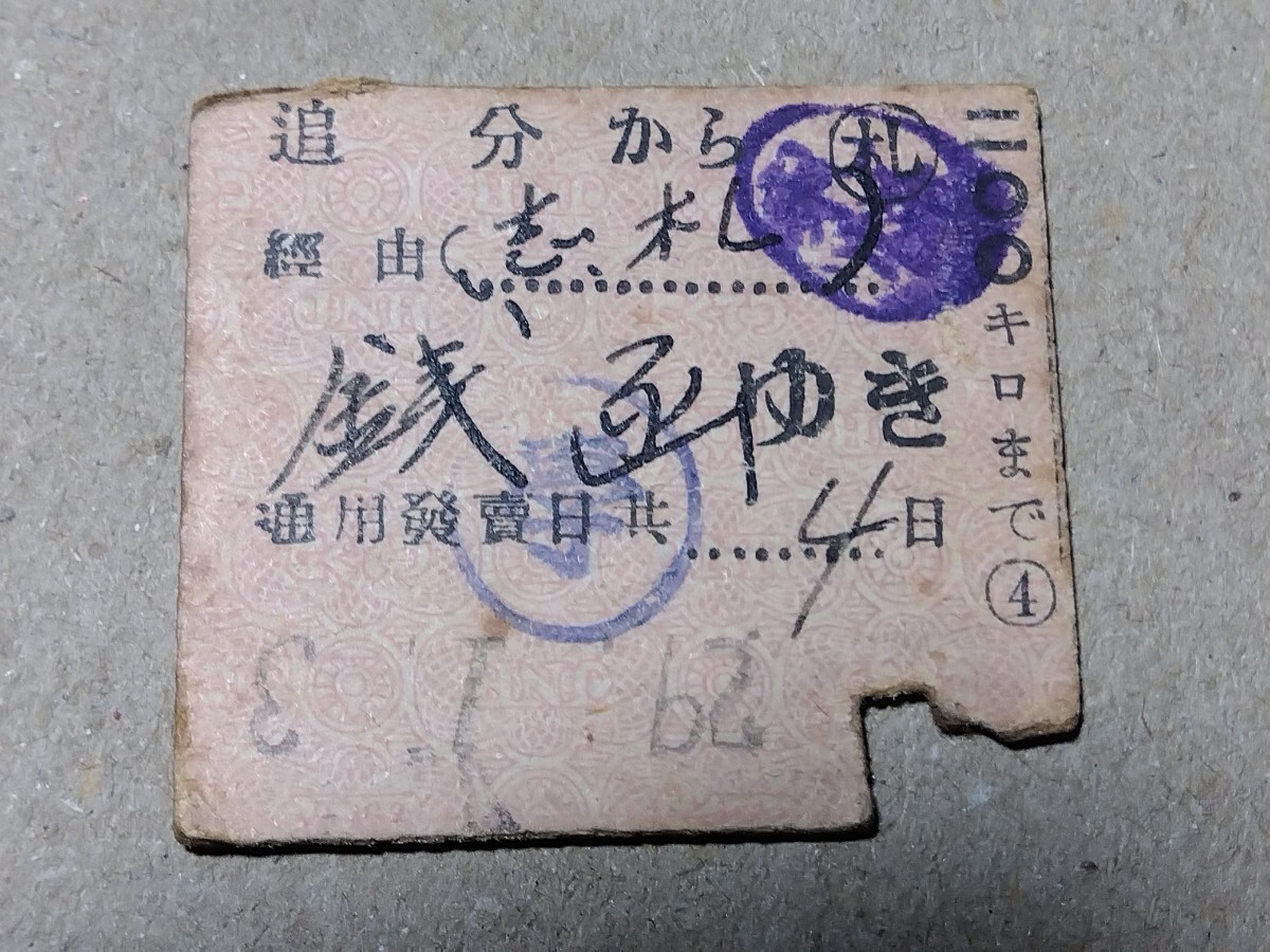 - 250314-140【国鉄きっぷ】硬券 追分→銭函 乗車券 学割 昭和29年