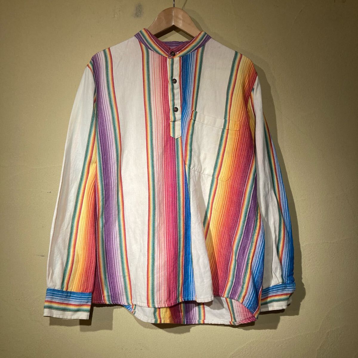 > ★送料込み★ 90's 00's ヴィンテージ 古着 ガテマラ 民族 ヘンリーネック ノーカラー 長袖シャツ ストライプ ネイティヴ柄