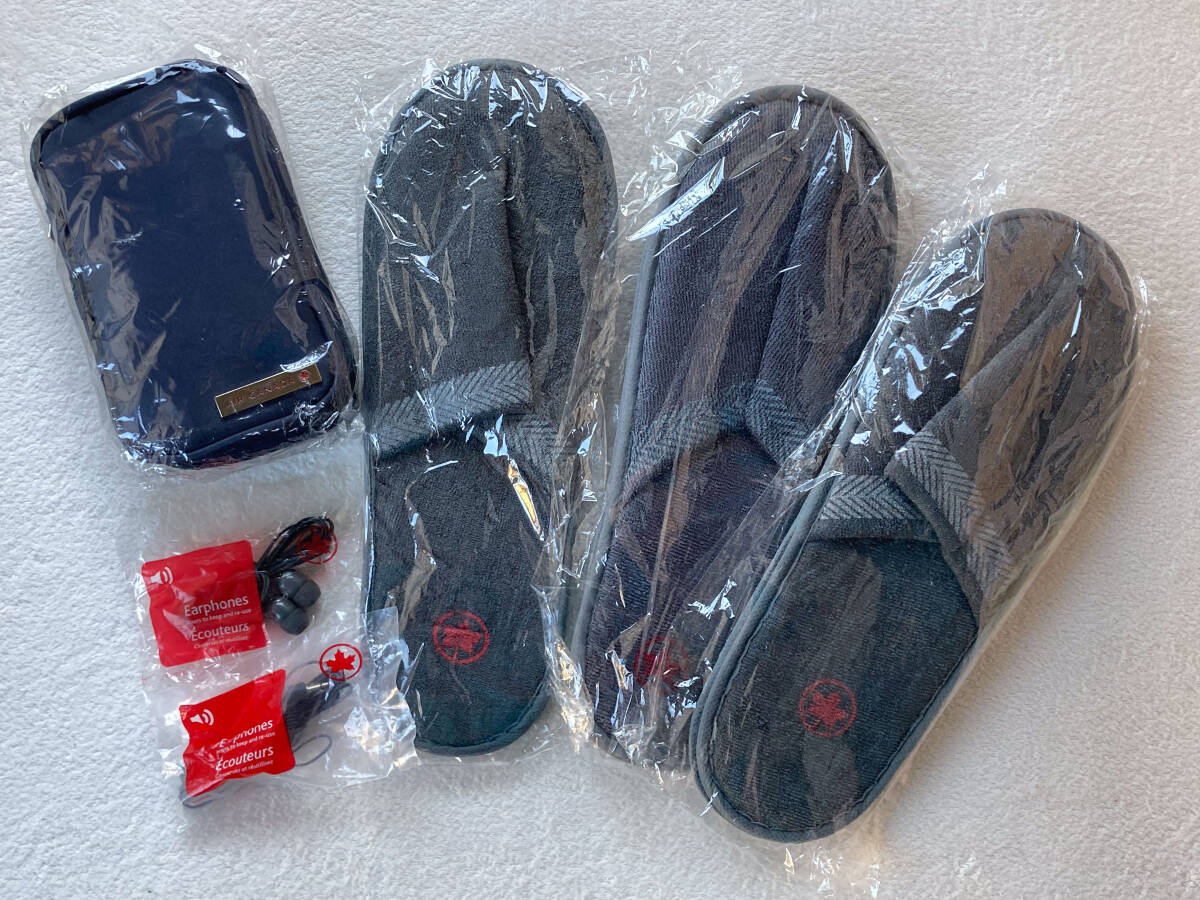 > 【送料込み・未開封レア品】エアカナダ (AC) ビジネスクラス トラベルポーチ & スリッパ 3足セット +イヤホン