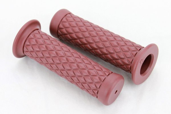 - 送料格安 非貫通 ラバーグリップ 左右セット ダイヤ柄 ワインレッド ゴムグリップ カスタムグリップ エンド付き 汎用 22.2mmハンドル用