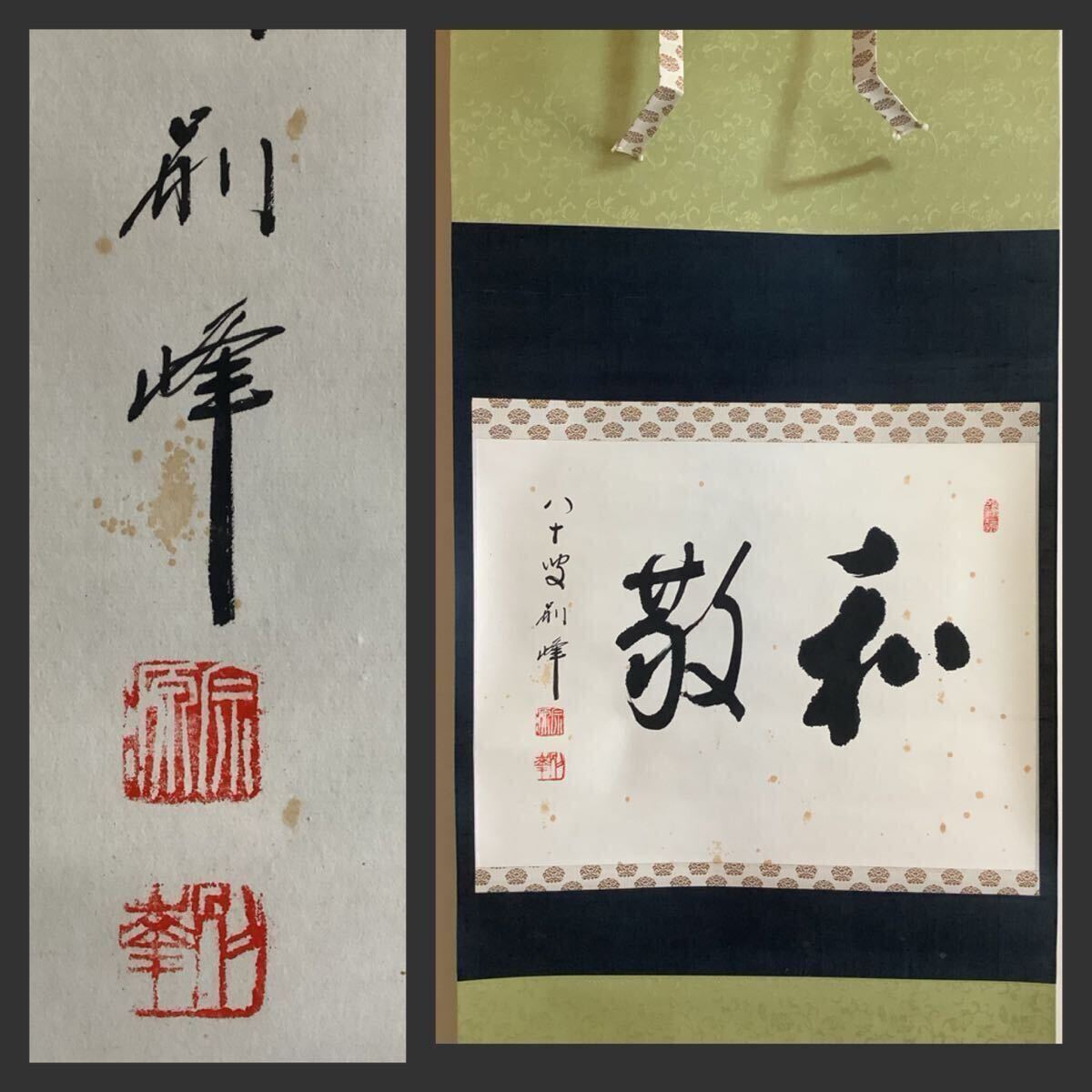 > 【模写】掛軸M754BL[朝比奈宗源(別峰) 和敬]紙本 書いたもの 共箱/仏画 仏教美術 臨済宗円覚寺派管長 禅僧 墨蹟 横物