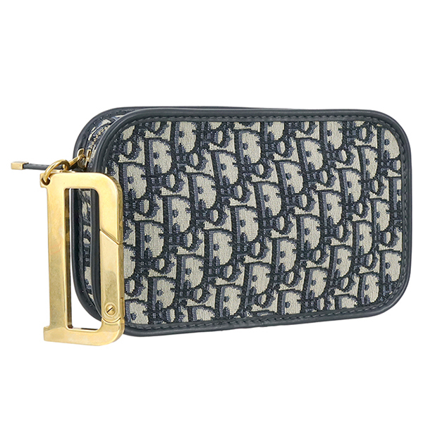 > ディオール クエイク クラッチバッグ オブリークジャガードキャンバス ネイビー ゴールド ユニセックス h-l098