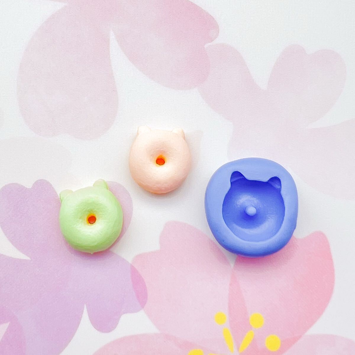 - 536 猫ドーナツ型 ネコ パン モールド 樹脂粘土 ミニチュア スイーツ デコ パーツ ブルーミックス モールド ハンドメイド シリコン