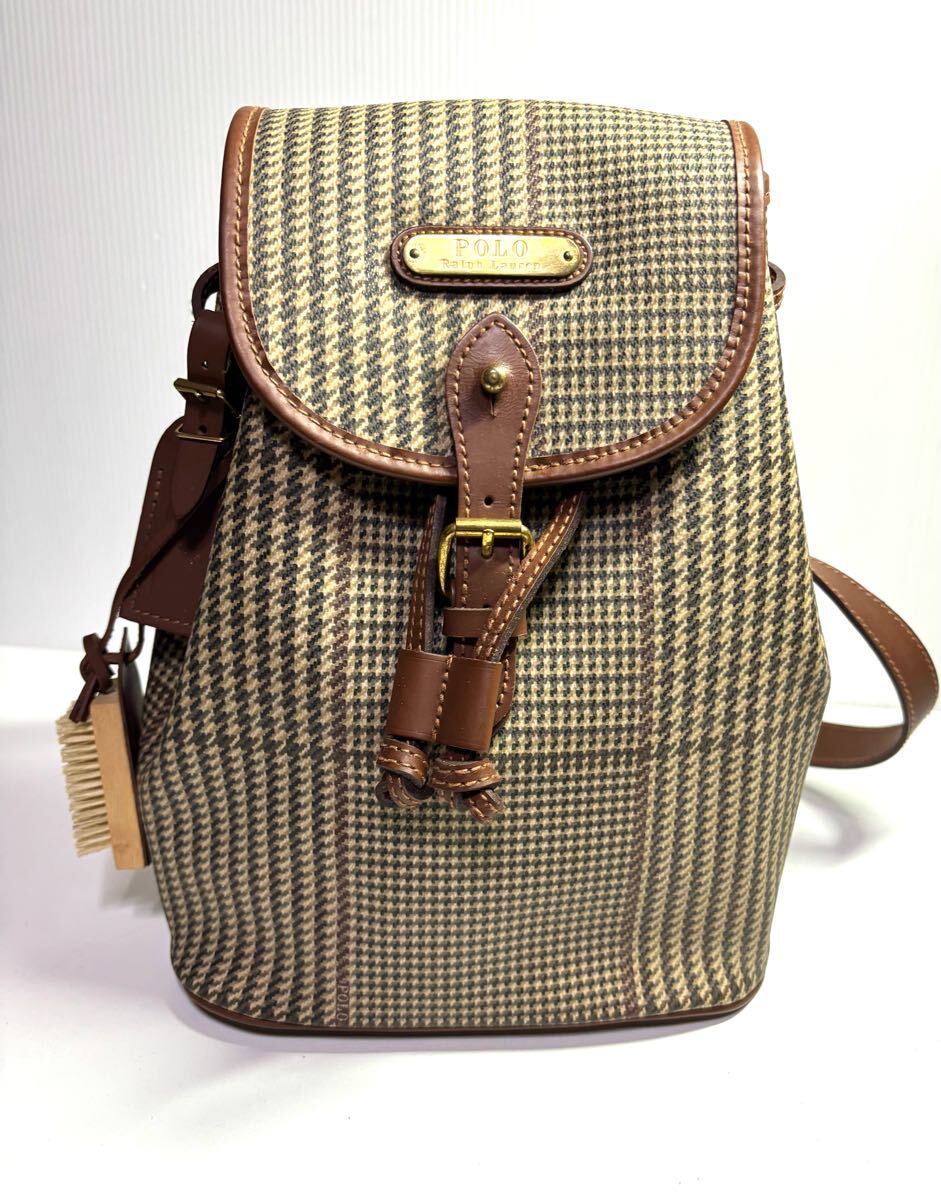 - 新品同様 POLO ラルフローレン リュックサック 千鳥格 ネームタグ ケアブラシ付き