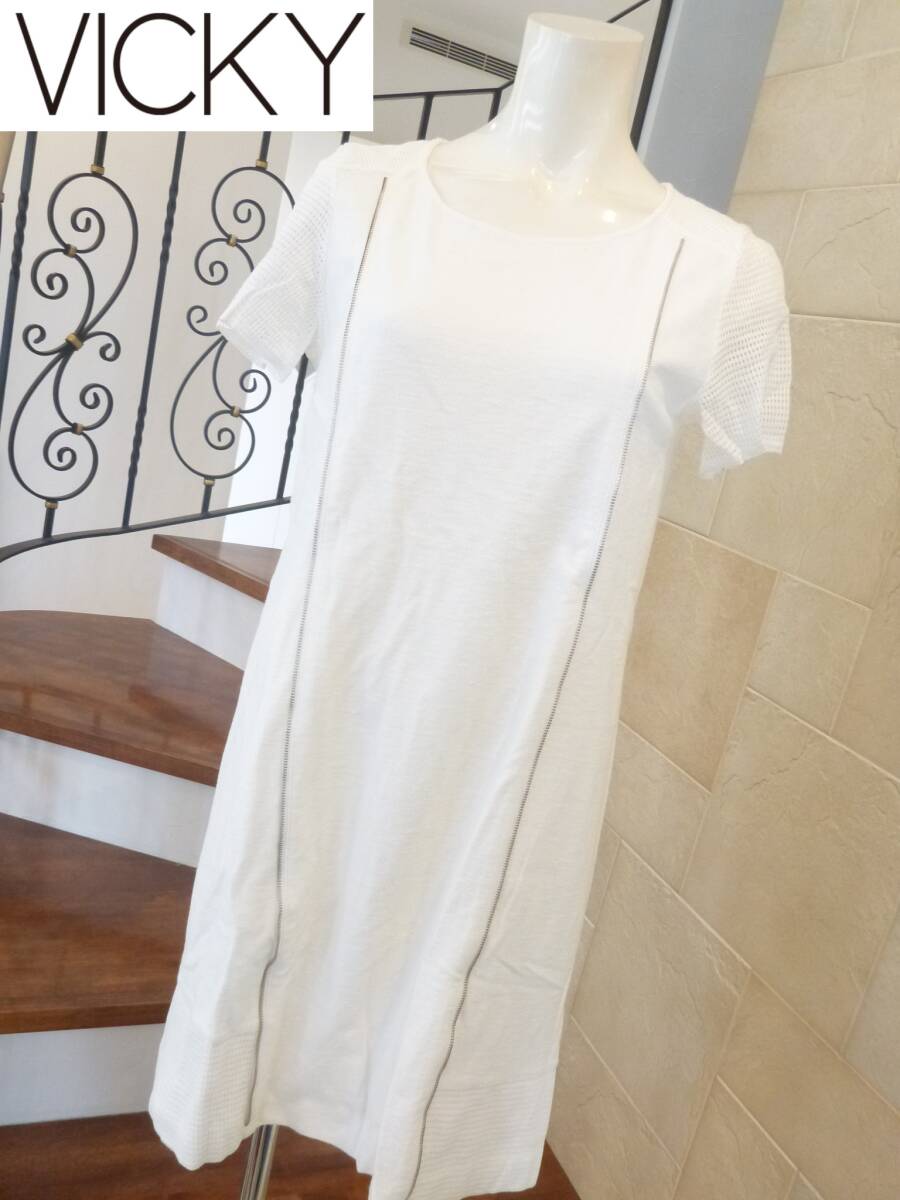 - 超美品 VICKY ビッキー★白 ホワイト 半袖 ワンピース 1 M相当