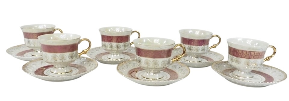 - 昭和レトロ KAKAMU CHINA ラスター彩 ティーカップ&ソーサー6客セット Fine Star China 1980年代 MMK703