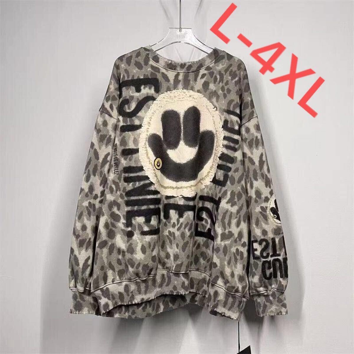 - トレーナー レディーストップス ヒョウ柄 大きいサイズ レディーストップス レディース洋服 普段着 英文字 レディースLUGA023(L-4XL)