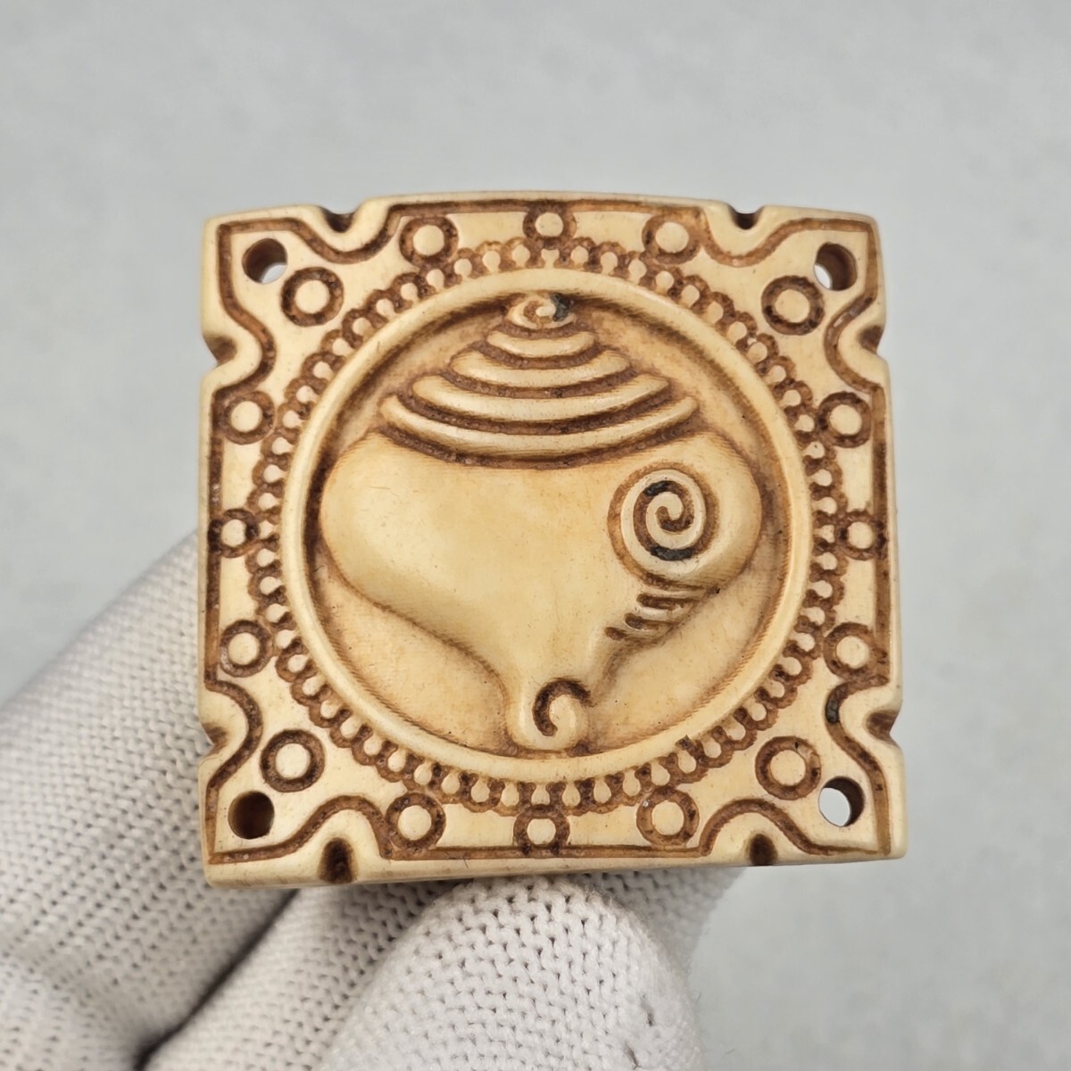 - チベット古仏具 本骨材 細工浮き彫り 降魔法螺紋 根付 お守り 民族飾品