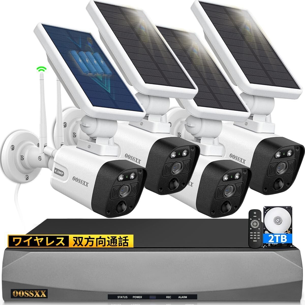 - 【ソーラーパネル充電・双方向通話】ワイヤレス 防犯カメラ ソーラー 屋外 400万画素 4台電池式 ソーラーパネル充電 監視カメラ 防犯カメラ