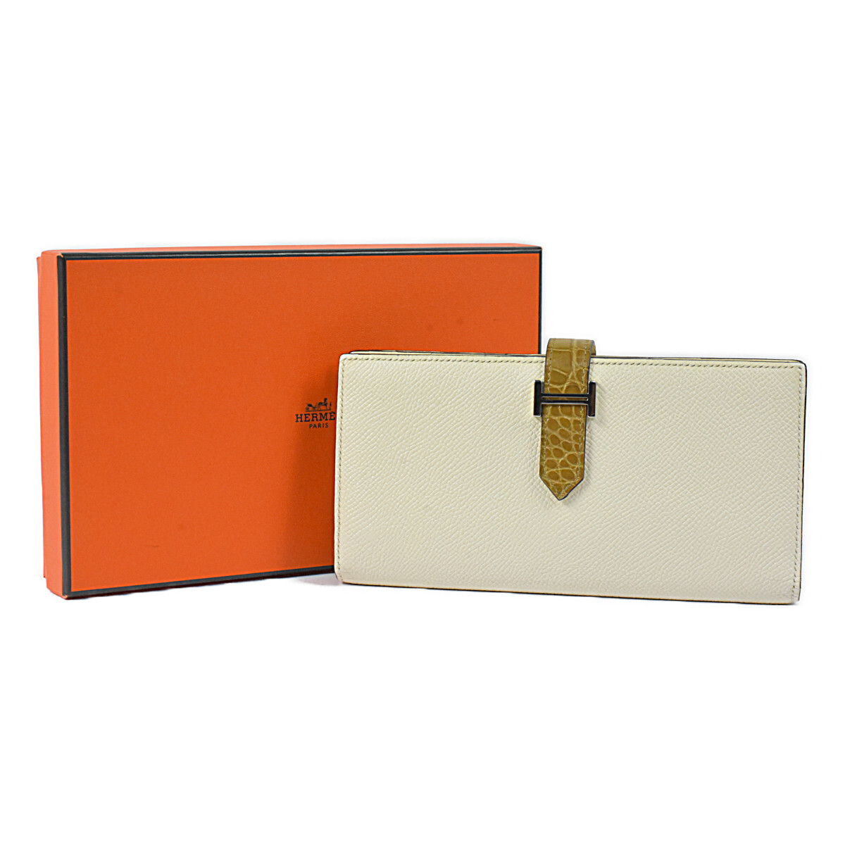 > エルメス 美品 ベアンスフレ タッチ マチあり 小銭入れ付き 長財布 エプソン×アリゲーター S金具 2021年 Z刻印 HERMES