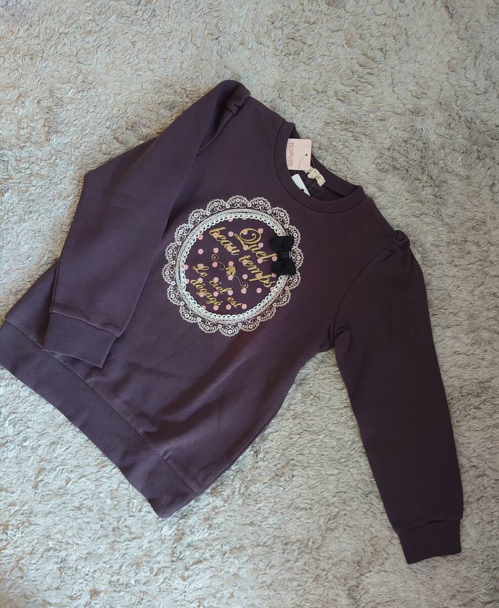 > HusHush*ハッシュアッシュ*レースリボンラメドット*140cm*大人シンプルトレーナー*ワールド製品*新品*