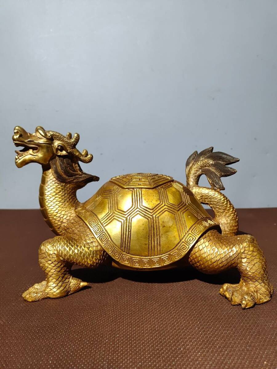 - ▽鴻▽ 銅製 塗金 八卦龍龜 置物 古賞物 中国古玩 中国古美術