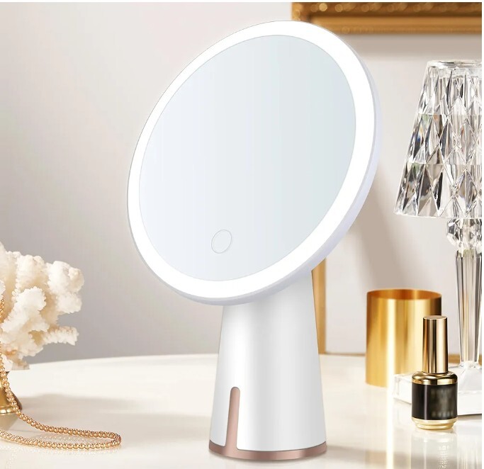 - 化粧鏡 鏡 ライト付き 卓上ミラー スタンドミラー USB充電 明るさ調整可能 ホワイト