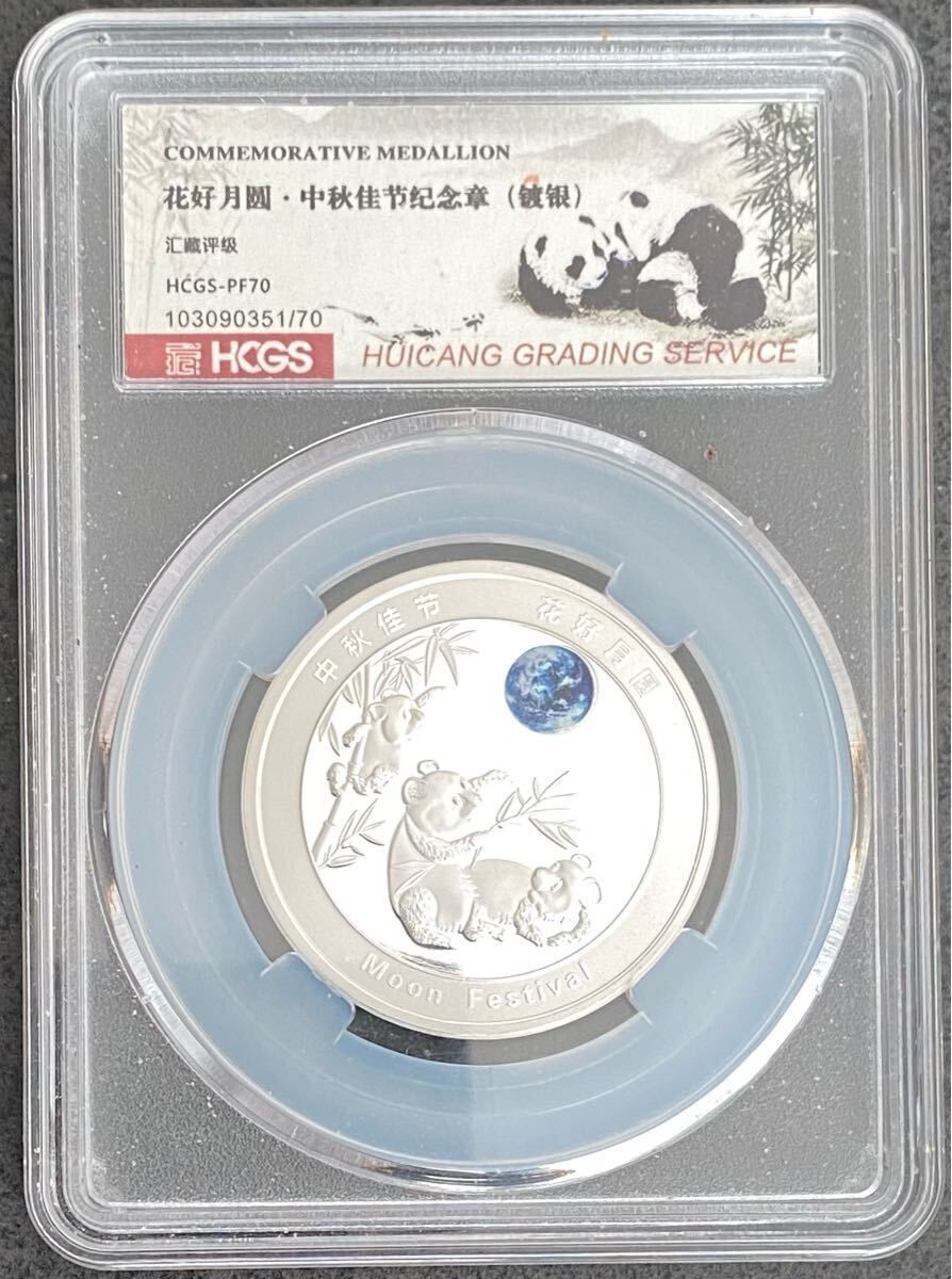 > 中国 花好月圓・中秋佳節記念銀章 ムーンフェスティバル ブルームーン 2oz 2オンス HCGS PF70 最高鑑定 初回発行 外国硬貨 記念硬貨