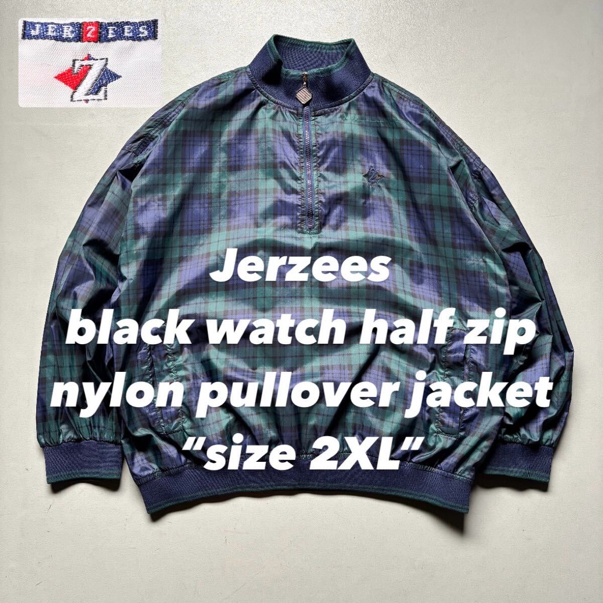 > Jerzees black watch half zip nylon pullover jacket 2XL ブラックウォッチ ハーフジップ ナイロンジャケット プルオーバー アノラック