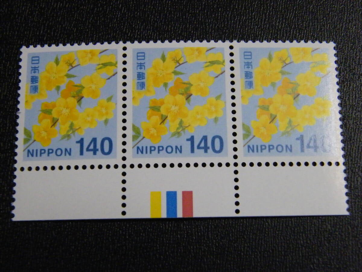 - ヤマブキ 140円 カラーマーク下 3枚ブロック 未使用 2014年シリーズ(CM付)