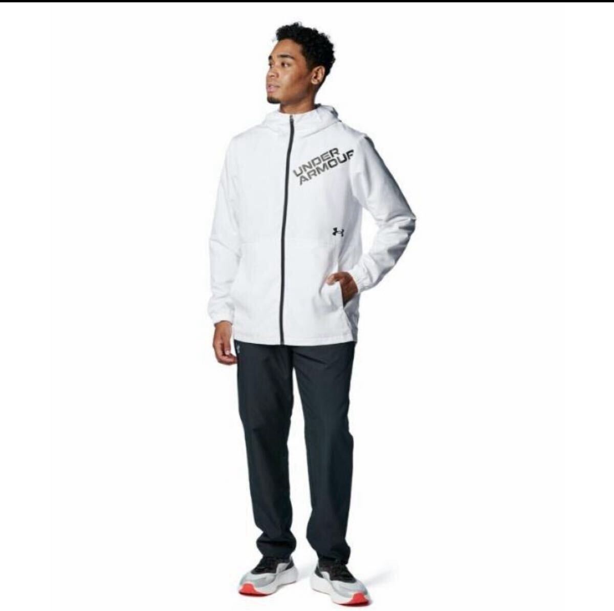 - 即決新品 Lサイズ UNDER ARMOUR トリコット ラインド ウーブン ジャケット 上下セット セットアップ ホワイト/ブラック アンダーアーマー