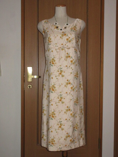 > I)■日本製ブランド品■【ketty ケティー】■ポリ■ピーチ系花柄■ハイウエスト切り替えリボン■清楚で可愛いサマーワンピース■SMサイズ