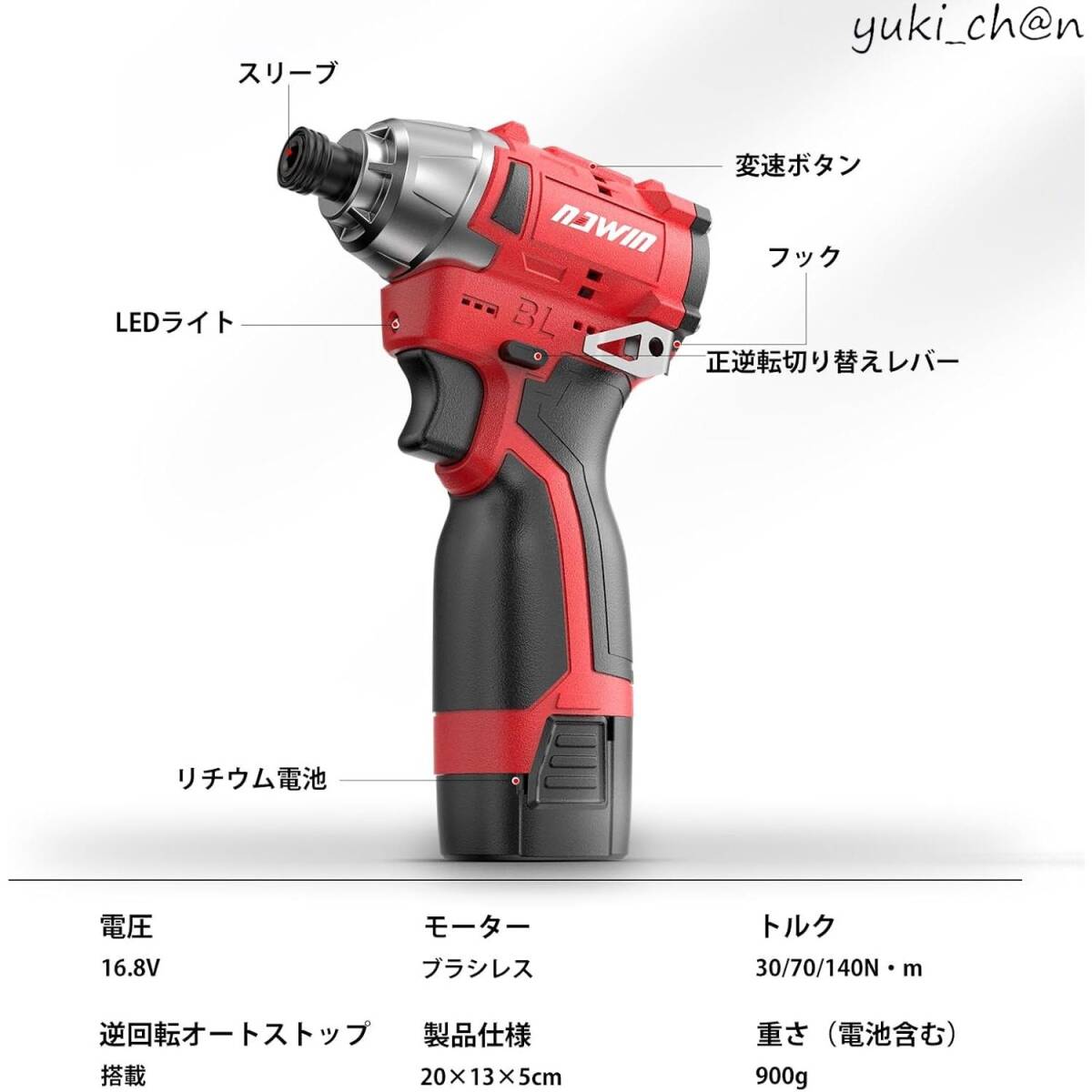 - インパクトドライバー 電動インパクトドライバー 充電式 DIY ブラシレスモーター 無段変速 3モード 高回転 LEDライト付