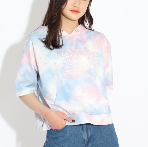 > 新品 PINK-latte フード付きタイダイカレッジロゴトップス ベビーピンク(171) 16(160cm) 定価3,289円