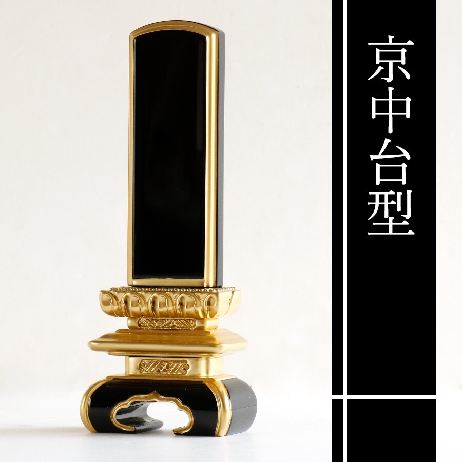 - 位牌 本金粉使用 上 京中台 4寸 ■ 文字 彫付き モダン 塗り位牌 高さ19cm