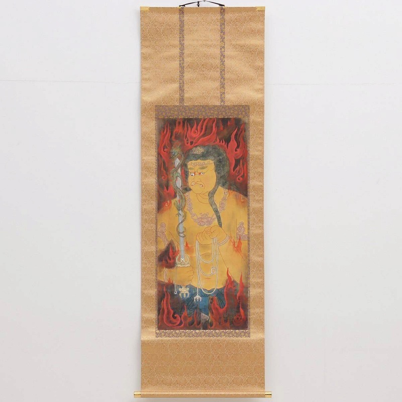 - 【真作】滝沢具幸 掛軸 紙本 肉筆 彩色「不動明王」落款 印有 共箱 仏画 仏教美術 cd22-9796[TOM]