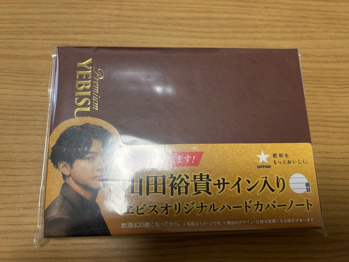 - 新品未開封 非売品 山田裕貴 サイン入ヱビスオリジナルハードカバーノート YEBISU 茶色 ノート ビール メモ