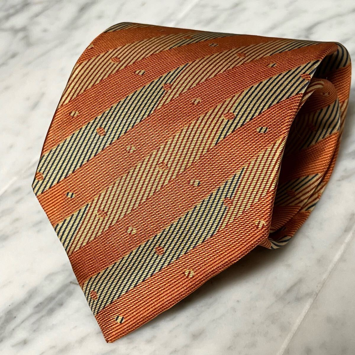 - 【美品】 999円~ ARMANI ネクタイ ストライプ オレンジ レッド系 (R5)