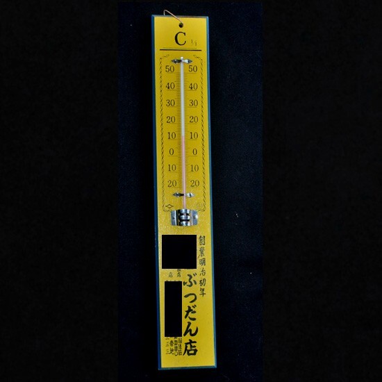 - ●2260● 昭和雑貨 ◆「 木製 掛け温度計 」古い仏具屋さんのロゴいり ◆ レトロな趣きを演出します!
