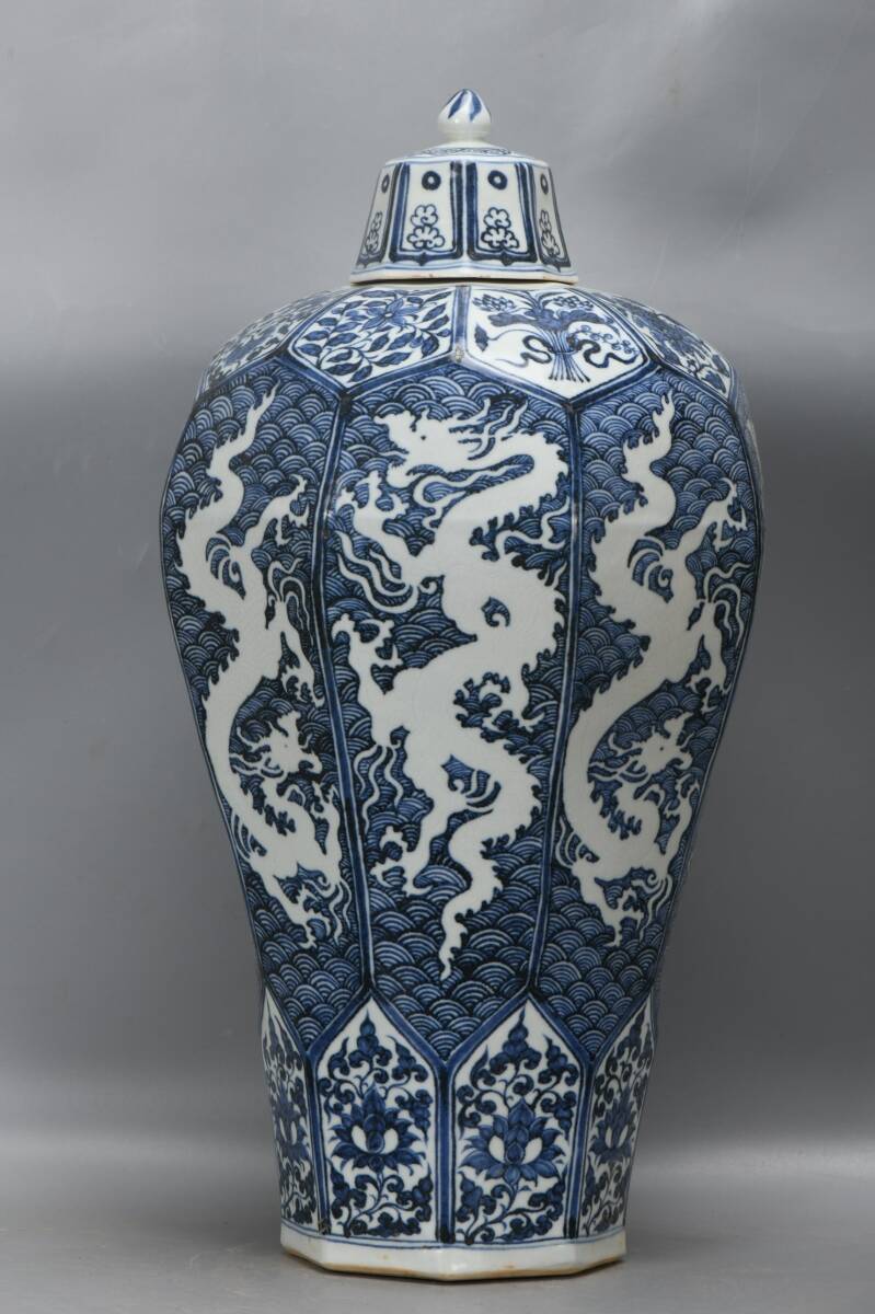 - ◆旧家蔵出◆古美術 中国古玩 元時代 元青花 八方八龍紋梅瓶 古賞物 骨董 時代物 A04