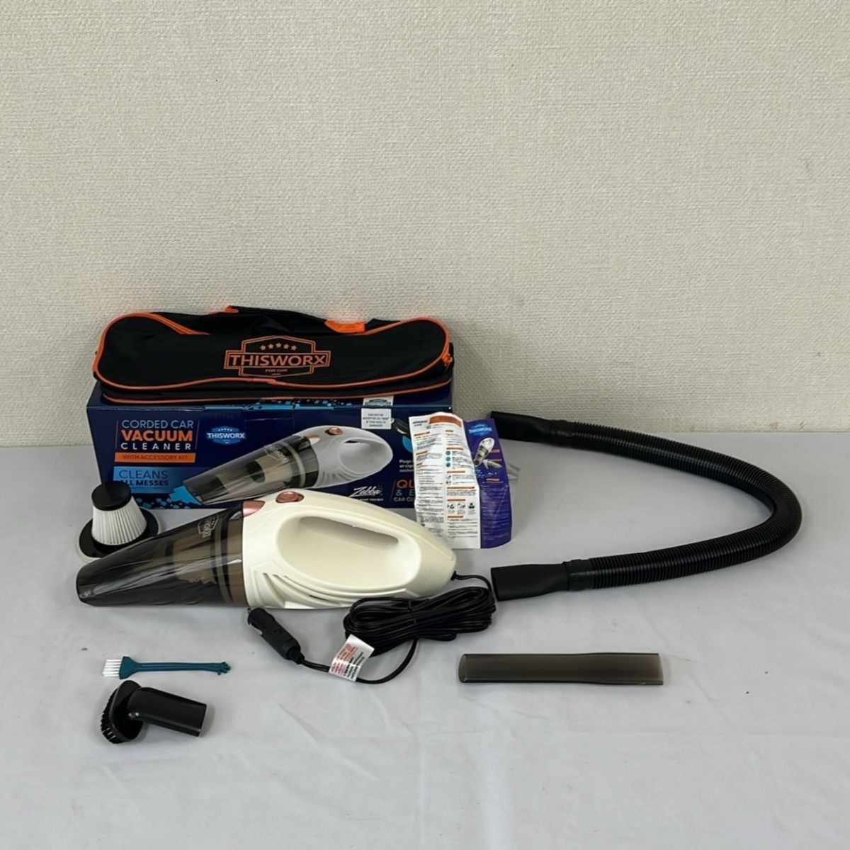 - 【中古】 THISWORK 車用掃除機 TWC-01 車内 シガーソケット式 12V カークリーナー 4.88mコード 交換用フィルター 収納バッグ付き(DT9)
