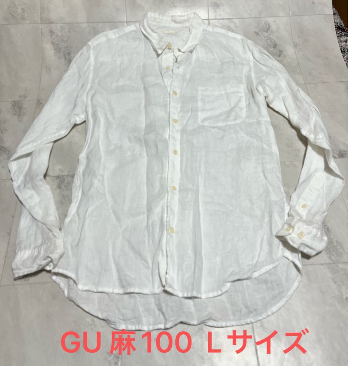 - GUジーユー 麻100% リネンシャツ 長袖シャツ Lサイズ ホワイト 白
