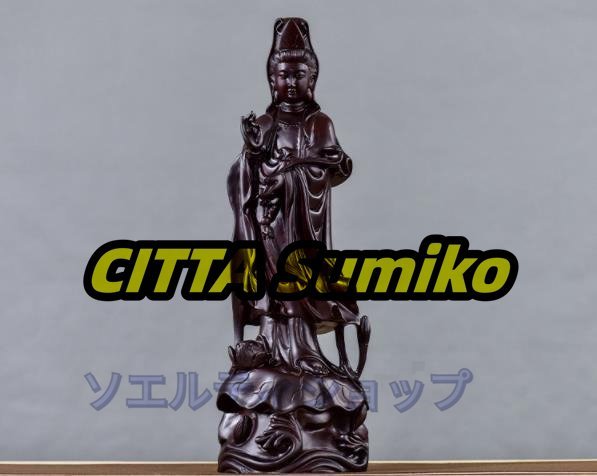 - 美品◆木彫仏像 仏教美術 伝統工芸品 精密細工 木彫り 黒檀木 観音菩薩像 仏像 置物 高さ30cm