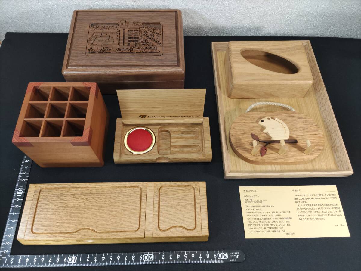 - ■送料無料!■まとめて■家具・木工の町■旭川クラフト■印鑑入れ■ペンケース■ペン立て■宝石箱■小物入れ■トレー■7点セット!