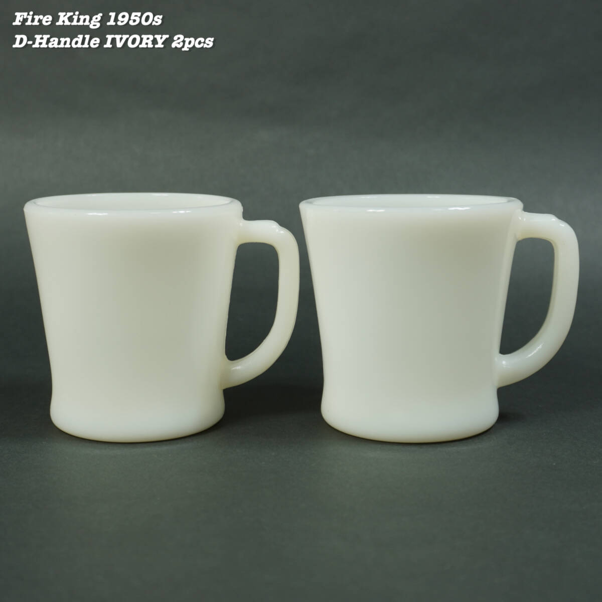 - Fire King IVORY D-Handle Mug Cup 2pcs M009 1950s Vintage ファイアーキング アイボリー ディーハンドルマグ マグカップ 1950年代