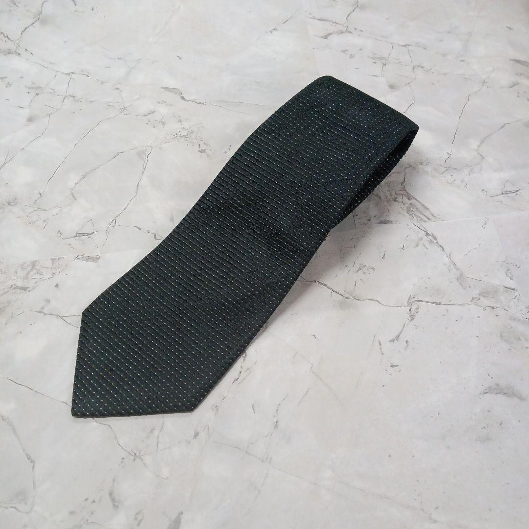 - フェアファクス ネクタイ 紺 濃い緑 ドット シルク 絹【n835】