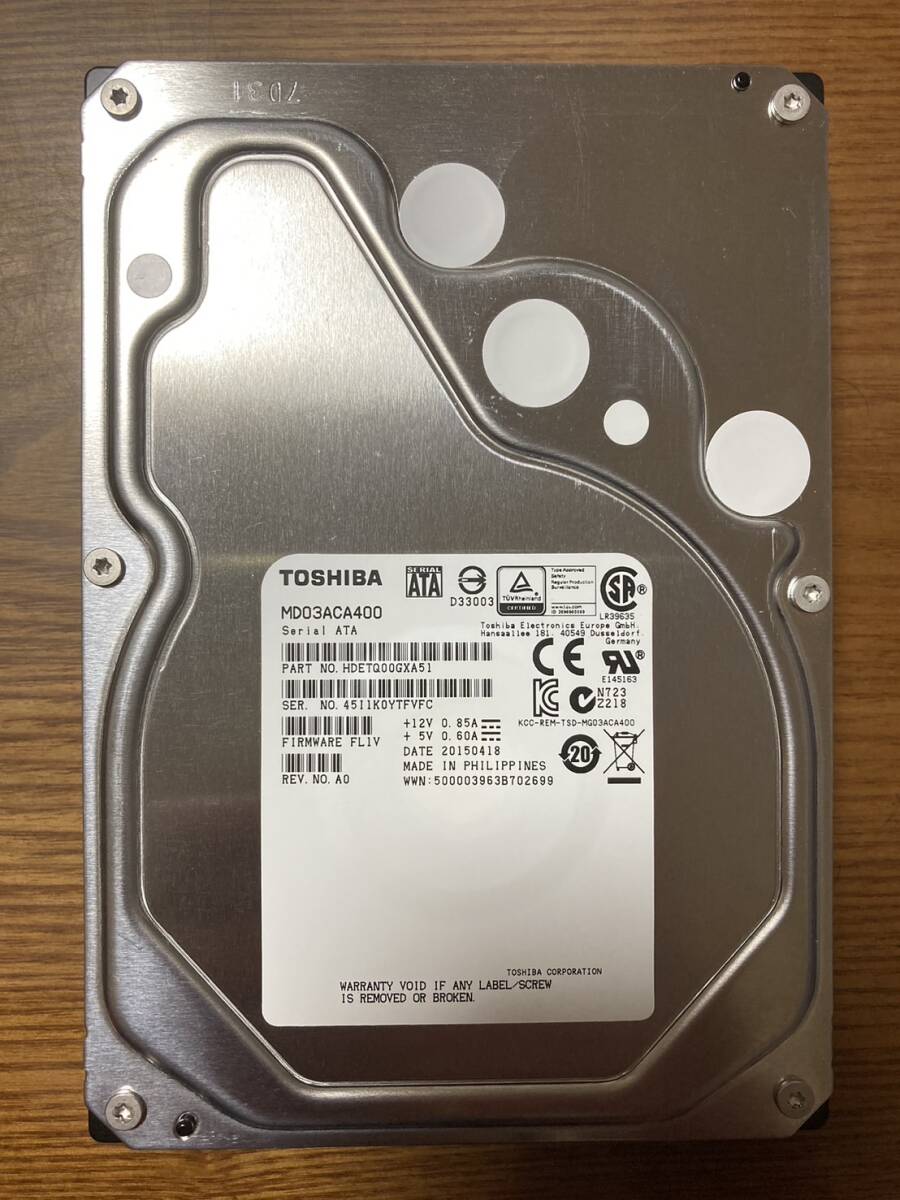 > 【状態◎】東芝 Toshiba MDシリーズ MD03ACA400 3.5インチHDD 4TB(高信頼HDD/使用時間:200時間未満!)