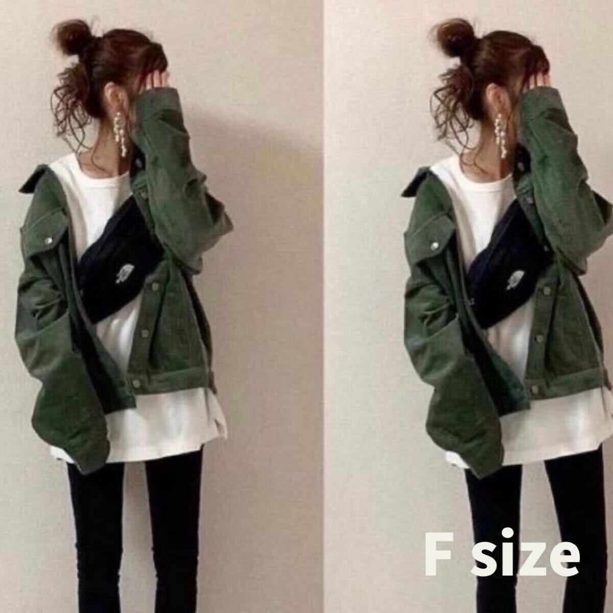 - H29★ミリタリージャケット コーデュロイジャケット ライトアウター 羽織 上着 グリーン 緑 カジュアル 春 秋 レディース フリーサイズ