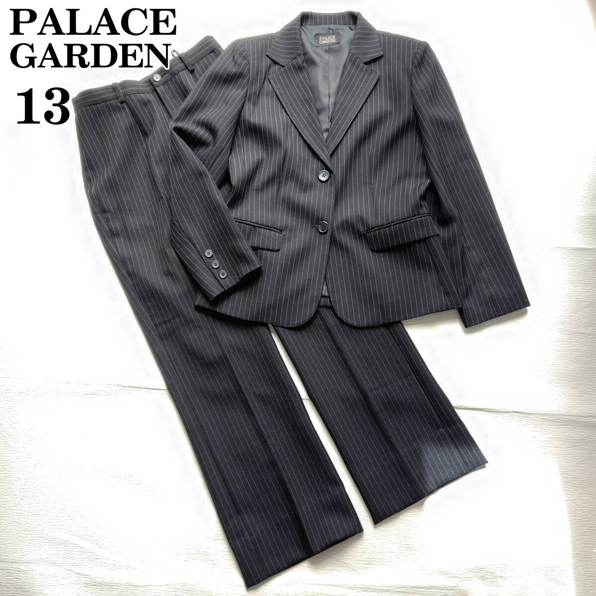 - 美品 PALACE GARDEN 大きいサイズXL 就活 入学卒業 パンツスーツ 黒 ピンストライプ レディース パレスガーデン 25fo-17