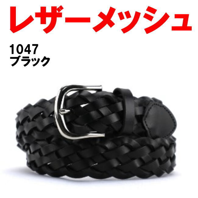 - ブラック 編込み レザー 本革 P1047 メッシュ ベルト メンズ レディース