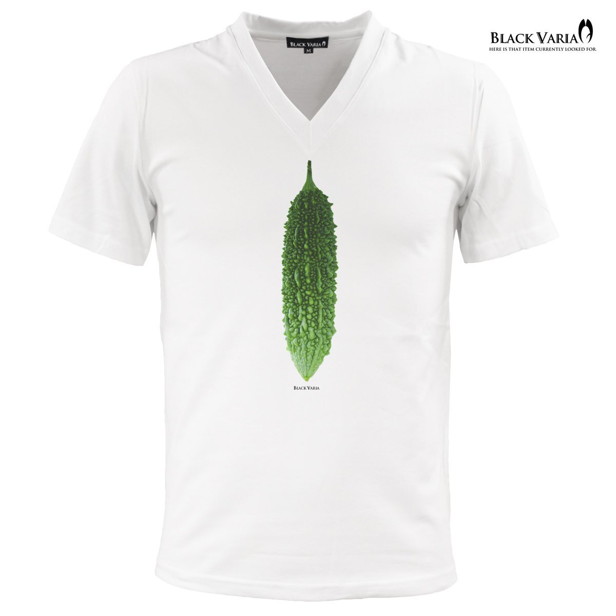 - zkk063-wh BLACK VARIA ゴーヤ ゴーヤー にがうり 綿100% 半袖 Vネック Tシャツ メンズ(ホワイト白) XL プリント 細身 VT VTシャツ